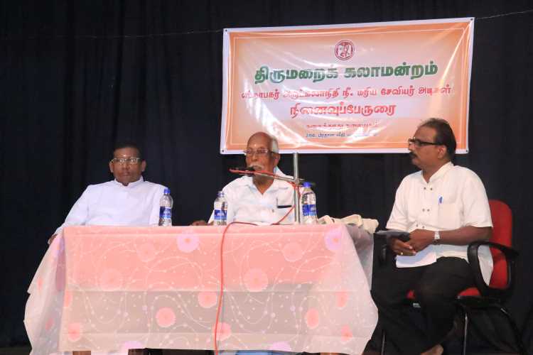 யாழ். திருமறைக்கலாமன்ற ஸ்தாபக இயக்குர் அமரர் அருட்தந்தை மரிய சேவியர் அடிகளாரின் ஐந்தாம் ஆண்டு நினைவாக முன்னெடுக்கப்பட்ட இரண்டாவது நினைவுப்பேருரை சித்திரை மாதம் 25ஆம் திகதி சனிக்கிழமை இன்று யாழ். பிரதான வீதியில் அமைந்துள்ள திருமறைக்கலாமன்ற கலைத்தூது கலையகத்தில் நடைபெற்றது.