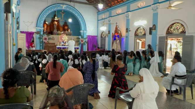 தீவகம் அல்லைப்பிட்டி மொண்பேர்ட் சர்வதேச பாடசாலை அருட்சகோதரர்கள் அருட்சகோதரிகள் ஆசிரியர்கள் மற்றும் மாணவர்களுக்கான தவக்கால தியானம் 20ஆம் திகதி நேற்றைய தினம் வெள்ளிக்கிழமை சாட்டி புனித சிந்தாத்திரை மாதா திருத்தலத்தில் இடம்பெற்றது.