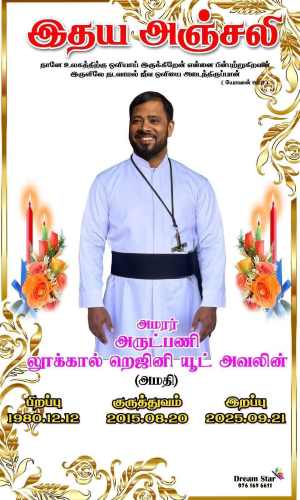 மாகாண அமலமரித்தியாகிகள் சபை குருவும், மன்னார் மறைமாவட்டம் இலுப்பைக்கடவை அந்தோனியார்புரம் பங்குத்தந்தையுமான அருட்தந்தை லூக்கால் றெஜினி யூட் அவலின் அவர்கள் புரட்டாதி மாதம் 21ஆம் திகதி ஞாயிற்றுக்கிழமை இறைவனடி சேர்ந்தார்.