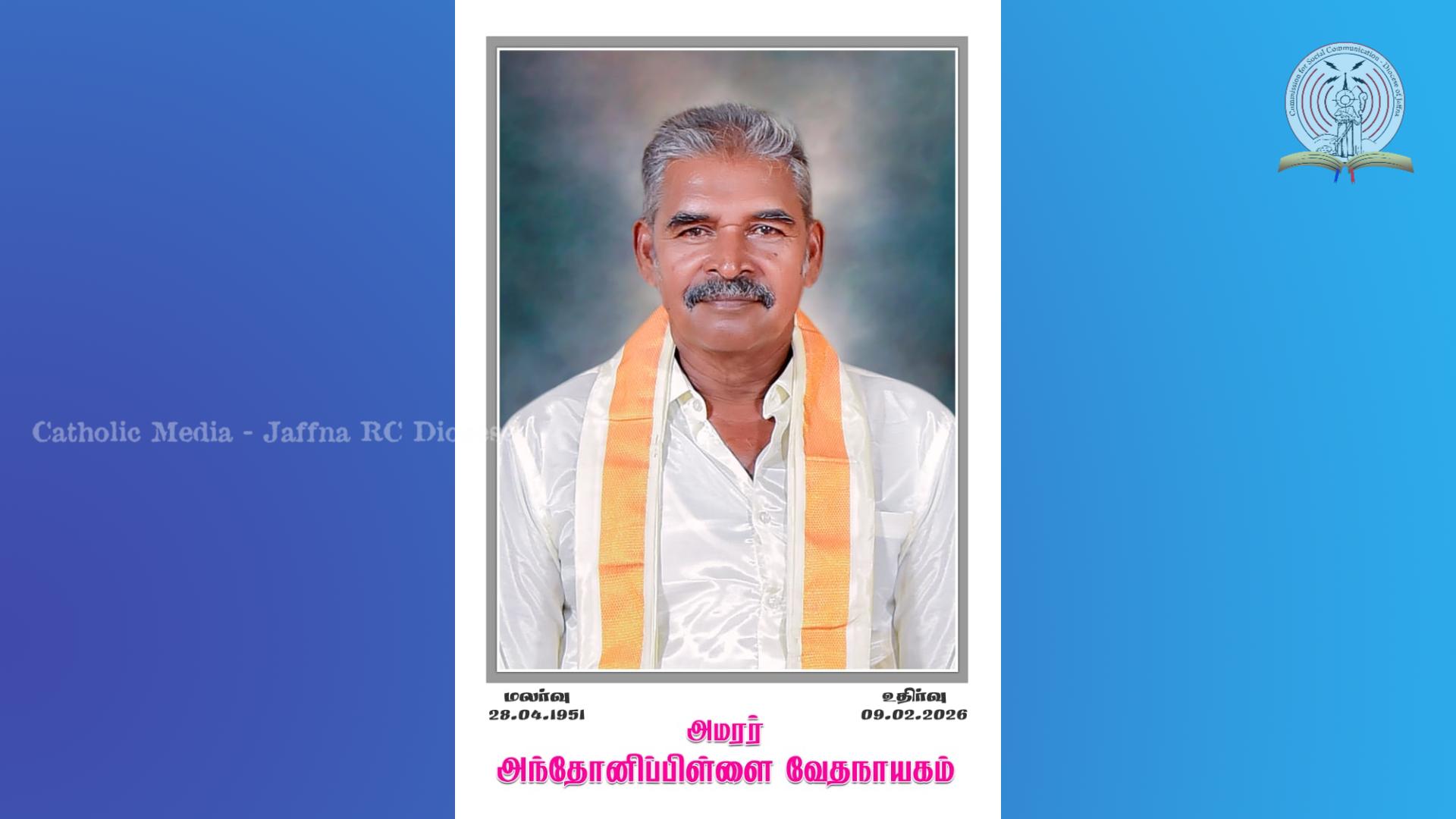 அமலமரித்தியாகிகள் சபை அருட்தந்தை அனுசியஸ் அவர்களின் அன்புத்தந்தை அந்தோனிப்பிள்ளை வேதநாயகம் அவர்கள் மாசி மாதம் 09ஆம் திகதி திங்கட்கிழமை இறைவனடி சேர்ந்தார்.