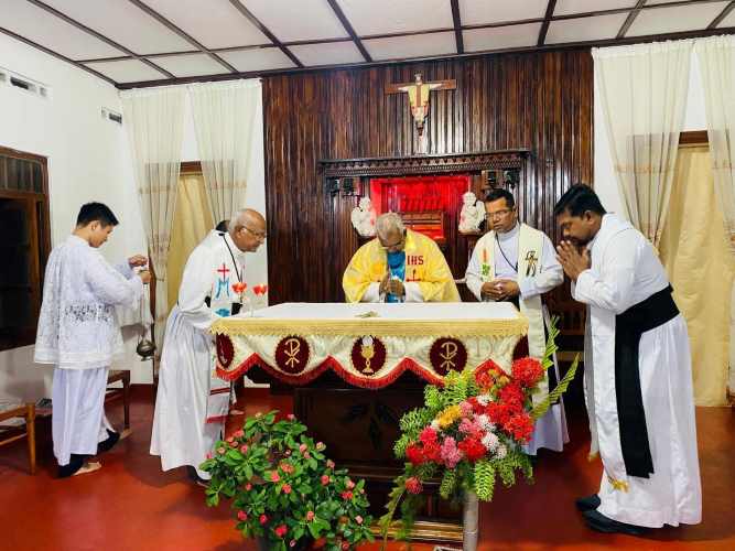இந்தியா நாட்டின் தமிழ்நாடு செங்கல்பட்டு மறைமாவட்ட ஆயர் பேரருட்தந்தை நீதிநாதன் அவர்கள் யாழ். மறைமாவட்டத்திற்கு விஜயம் மேற்கொண்ட நிலையில் டி மசனெட் இறையியலக குழுமத்தை சந்தித்து அங்கு சிறப்புத் திருப்பலி ஒப்புக்கொடுத்தார்.
