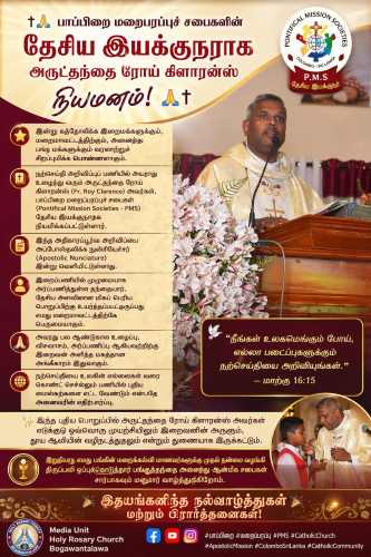 இலங்கை தேசிய பாப்பிறை மறைபரப்பு சபைகளின் இயக்குநராக கண்டி மறைமாவட்ட அருட்தந்தை ரோய் கிளாரன்ஸ் அவர்கள் நியமனம்பெற்றுள்ளார்.