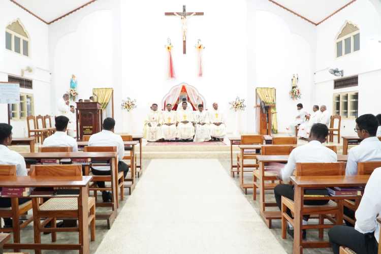 கொழும்புத்துறை புனித பிரான்சிஸ் சவேரியார் உயர் குருத்துவ கல்லூரியில் கடந்த கல்வியாண்டில் தங்கள் குருத்துவ உருவாக்கத்தை நிறைவுசெய்து திருநிலைப்படுத்தப்பட்ட புதிய குருக்கள் இணைந்து ஒப்புக்கொடுத்த நன்றித்திருப்பலி கார்த்திகை மாதம் 24ஆம் திகதி கடந்த திங்கட்கிழமை கல்லூரி சிற்றாலயத்தில் நடைபெற்றது.