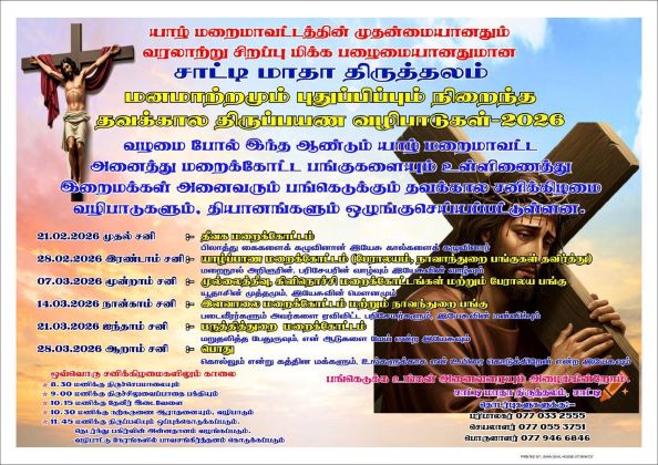 தீவகம், சாட்டி புனித சிந்தாத்திரை அன்னை திருத்தலத்தில் தவக்கால யாத்திரை தியானங்களை நடாத்த இவ்வருடமும் ஏற்பாடுகள் இடம்பெற்றுவருவதாக திருத்தல பரிபாலகர் அருட்தந்தை பாஸ்கரன் அவர்கள் தெரிவித்துள்ளார்.