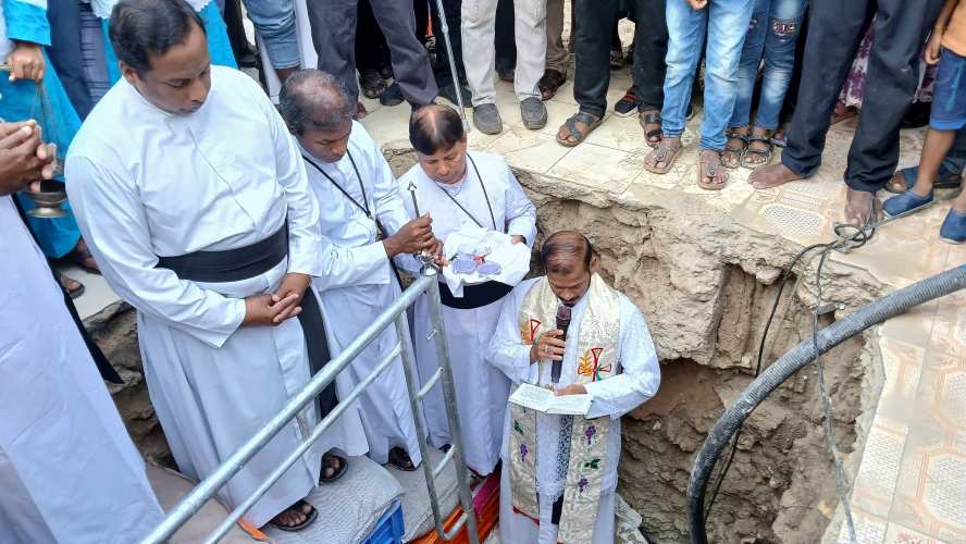 பங்குத்தந்தை அருட்தந்தை பத்திநாதன் அவர்கள் புதிய ஆலயத்திற்கான அடிக்கல்லை நாட்டிவைத்ததுடன் அவருடன் இணைந்து அமலமரித்தியாகிகள் சபை அருட்தந்தையர்கள் ஜோகராஜ், இயூஜின் அமல்ராஜ், அருட்தந்தையர்கள் கான்ஸ்போவர், சோபன் றூபஸ் மற்றும் அருட்சகோதரி சுகிர்த செல்வி, ஆலய நிர்வாகத்தினரும் இந்நிகழ்வில் கலந்துகொண்டனர்.