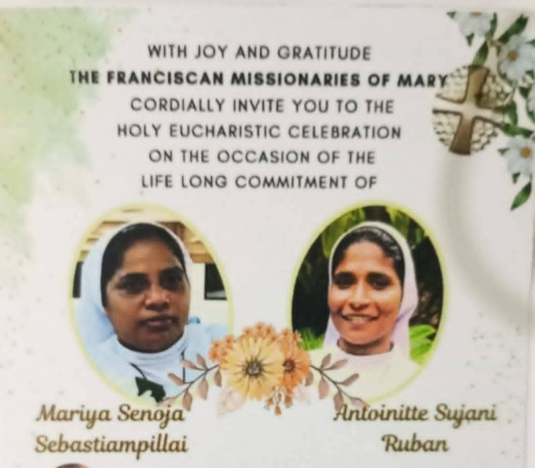 மன்னார் மறைமாவட்ட ஆயர் பேரருட்தந்தை அந்தோனிப்பிள்ளை ஞானப்பிரகாசம் அவர்களின் தலைமையில் நடைபெற்ற திருப்பலியில் அருட்சகோதரிகள் மரிய செனோஜா செபஸ்ரியாம்பிள்ளை மற்றும் அன்ரனிற் சுஜானி ரூபன் ஆகியோர் தமது நித்திய அர்ப்பண வார்த்தைப்பாட்டை நிறைவேற்றினர்.