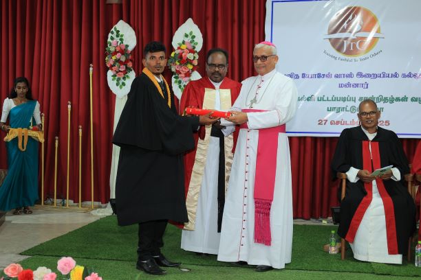 மன்னார் மறைமாவட்டம் புனித ஜோசப்வாஸ் இறையியல் கல்லூரியில் இறையியல் கற்கைநெறியை நிறைவுசெய்த மாணவர்களுக்கான பட்டமளிப்பு புரட்டாதி மாதம் 27ஆம் திகதி சனிக்கிழமை மறைமாவட்ட பொதுநிலையினர் குடும்ப பணியகத்தில் நடைபெற்றது.