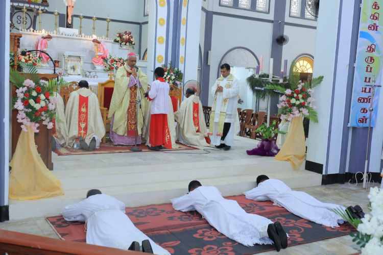 மறைமாவட்ட ஆயர் பேரருட்தந்தை அந்தோனிப்பிள்ளை ஞானப்பிரகாசம் அவர்களின் தலைமையில் இடம்பெற்ற திருப்பலியில் மன்னார் மறைமாவட்டத்தை சேர்ந்த அருட்சகோதரர்கள் றொபேட் அமலதாஸ் பெஞ்சமின், ஜெயசீலன் ஜெயசுதன் மற்றும் இரத்தினபுரி மறைமாவட்டத்தை சேர்ந்த திருவுளப்பணியாளர் சபை அருட்சகோதரர் ஜோசப் றோய் ஆகியோர் திருத்தொண்டர்களாக திருநிலைப்படுத்தப்பட்டனர்.