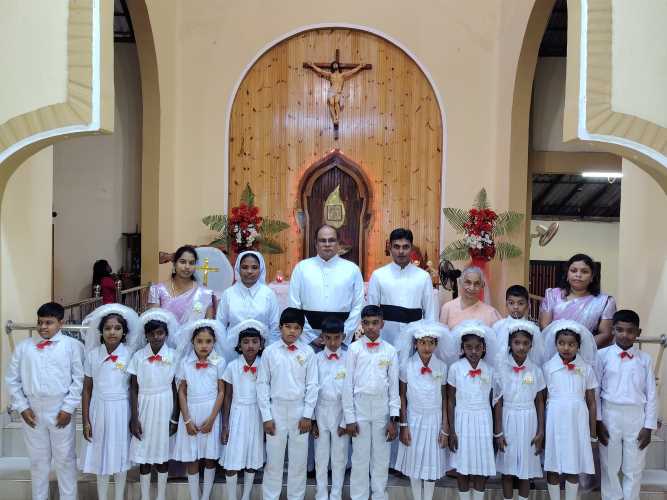 மல்வம் திருக்குடும்ப ஆலய பிள்ளைகளுக்கான முதல்நன்மை அருட்சாதனம் வழங்கும் நிகழ்வு பங்குத்தந்தை அருட்தந்தை அருட்செல்வன் அவர்களின் ஒழுங்குபடுத்தலில் கார்த்திகை மாதம் 16ஆம் திகதி கடந்த ஞாயிற்றுக்கிழமை நடைபெற்றது.