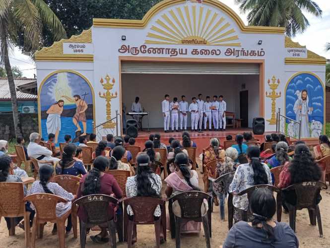 பங்குத்தந்தை அருட்தந்தை றெக்ஸ் சவுந்தரா அவர்களின் ஒழுங்குபடுத்தலில் அருணோதய கலையரங்க முன்றலில் இடம்பெற்ற இந்நிகழ்வில் யாழ். புனித மடுத்தீனார் சிறிய குருமட அதிபர் அருட்தந்தை செல்வரட்ணம் மற்றும் குருமட மாணவர்கள் கலந்து கருத்துரைகள், பாடல், குழுச்செயற்பாடுகள் ஊடாக பங்கேற்பாளர்களை வழிப்படுத்தினர்.