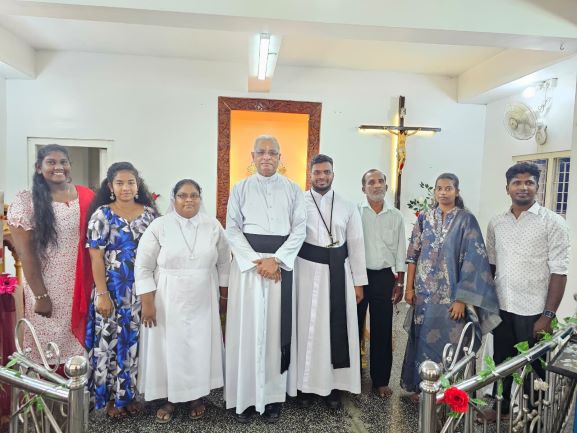 திருப்பலியை யாழ். மறைமாவட்ட குருமுதல்வர் அருட்தந்தை ஜெபரட்ணம் அவர்கள் தலைமைதாங்கி ஒப்புக்கொடுத்தார்.