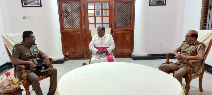 வட மாகாண சிரேஸ்ட பிரதி பொலிஸ்மா அதிபர் புத்திக்க ஸ்ரீவர்த்தன அவர்கள் யாழ். மறைமாவட்ட ஆயர் பேரருட்தந்தை யஸ்ரின் ஞானப்பிரகாசம் அவர்களை சந்தித்து கலந்துரையாடியுள்ளார்.