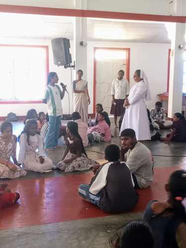 பங்குத்தந்தை அமலமரித்தியாகிகள் சபை அருட்தந்தை அமல்ராஜ் அவர்களின் ஒழுங்குபடுத்தலில் இடம்பெற்ற இக்கருத்தமர்வில் யாழ். மாகாண திருக்குடும்ப கன்னியர் சபை அருட்சகோதரிகள் கலந்து கருத்துரை, குழுச்செயற்பாடுகள், தலைமைத்துவ பயிற்சி ஊடாக மாணவர்களை வழிப்படுத்தினர்.